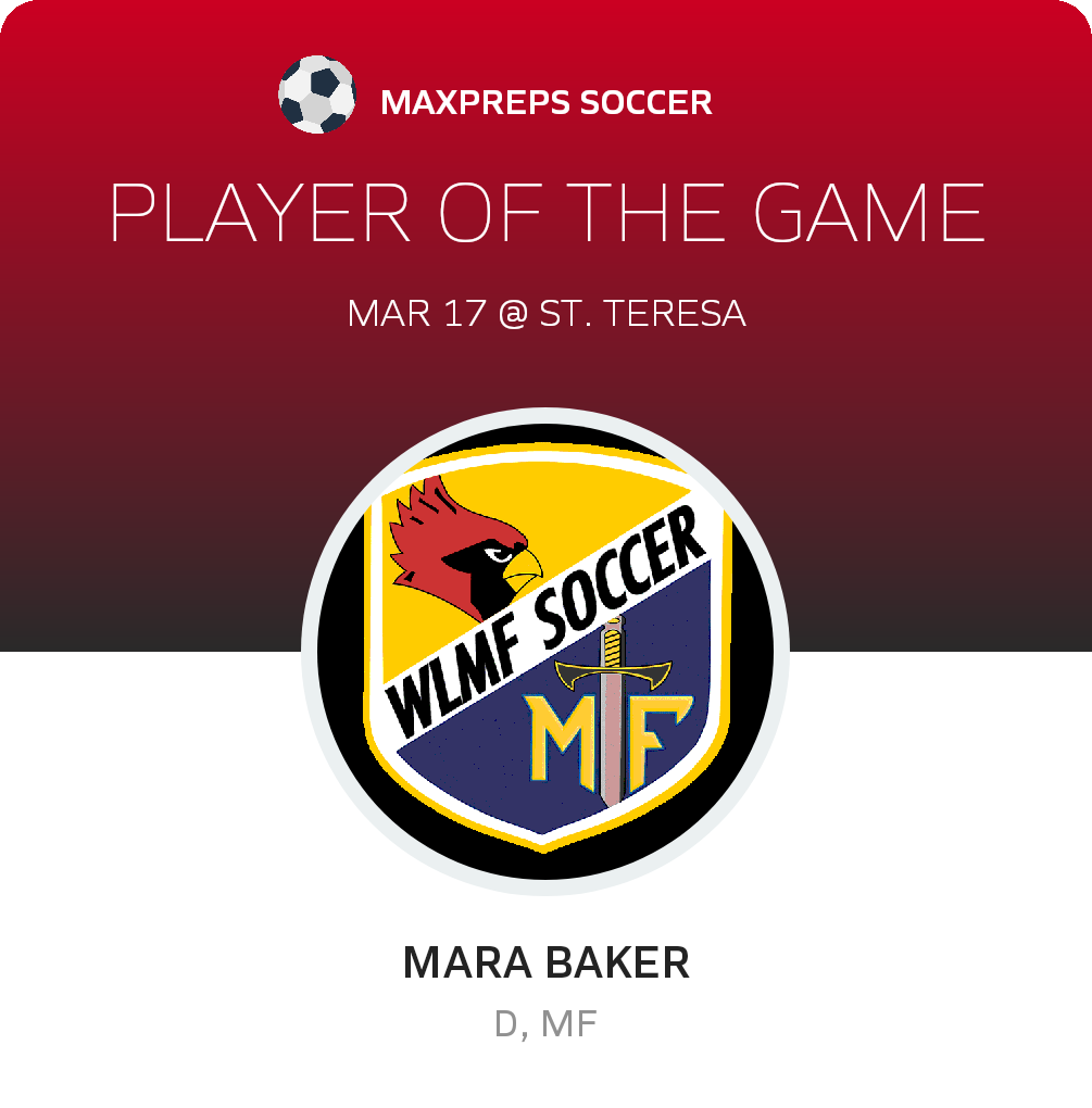 Congratulations to #14 Mara Baker for being selected the Warrensburg-Latham/Maroa-Forsyth Girls Soccer Player of the Match.