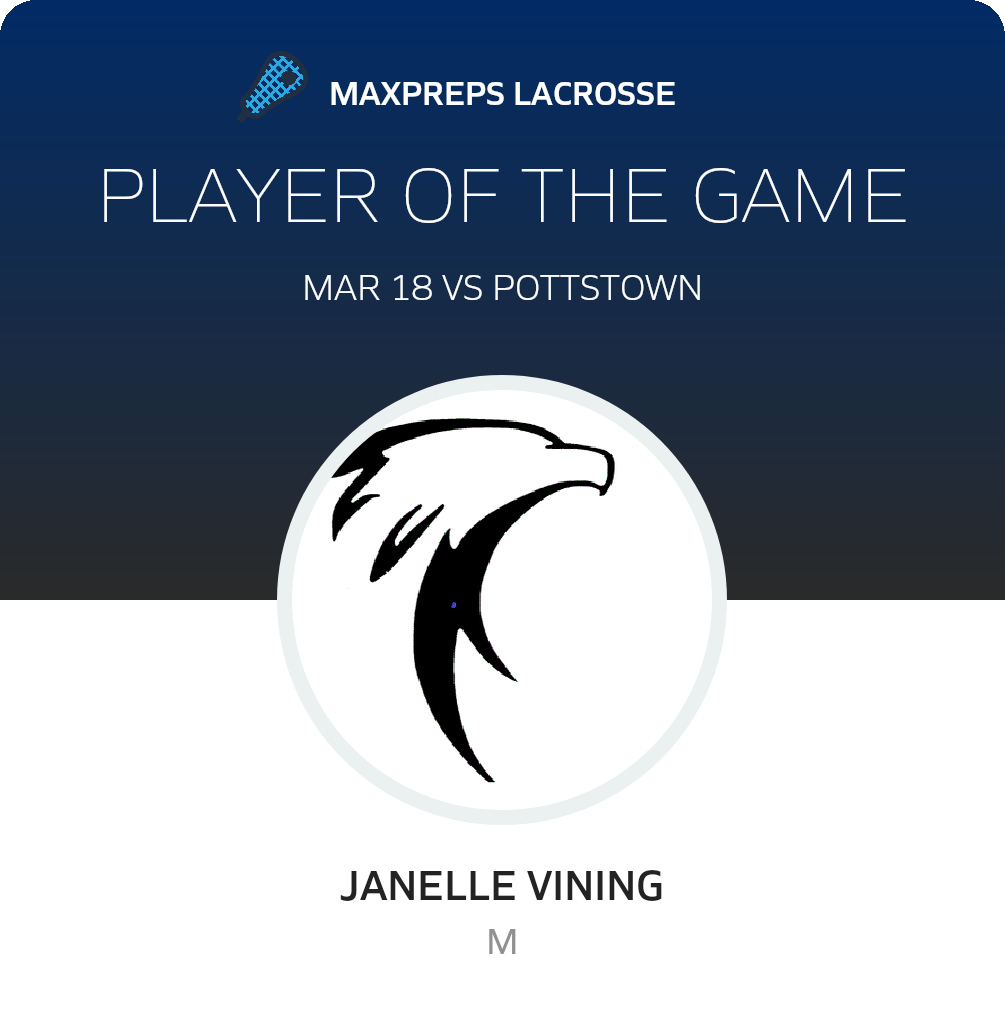 Congratulations to #27 Janelle Vining for being selected the Coventry Christian Girls Lacrosse Player of the Game.