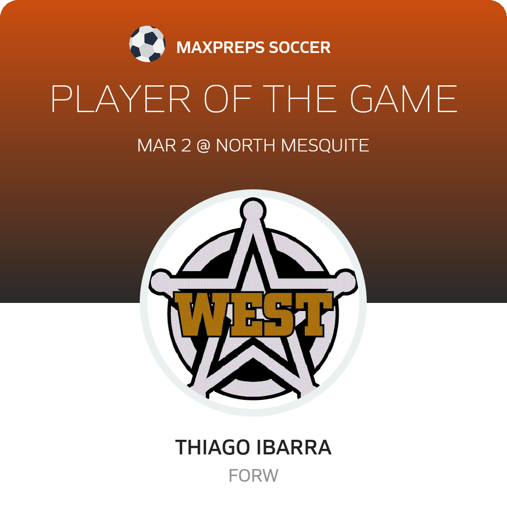 Congratulations to #28 Thiago Ibarra for being selected the West Mesquite JV Soccer Player of the Match.