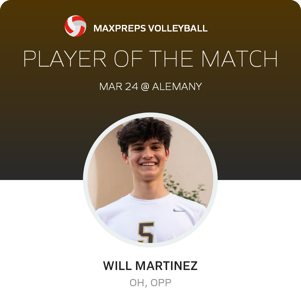 The St. Francis Golden Knights volleyball squad scored 3 points and held the host Alemany Warriors to 1 in the Golden Knights league win on Thursday.