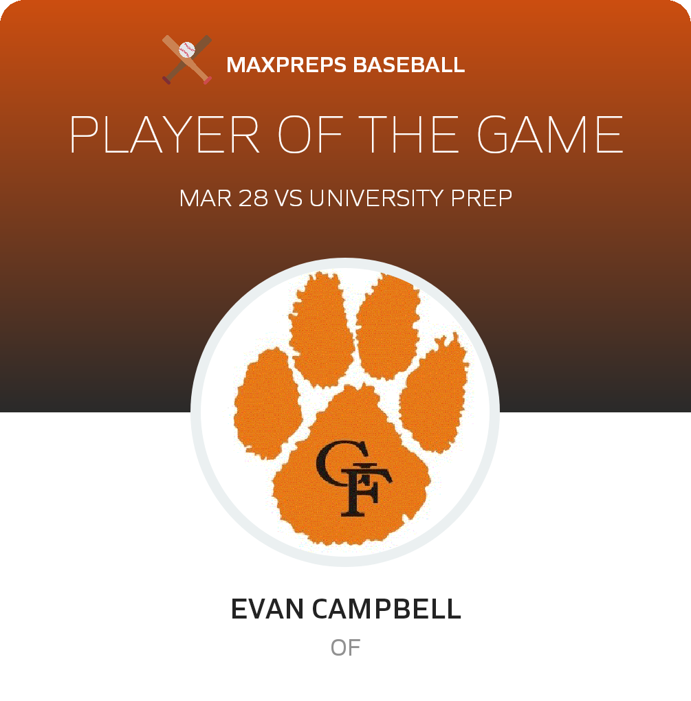 Congratulations to #22 Evan Campbell for being selected the Granite Falls Baseball Player of the Game.
