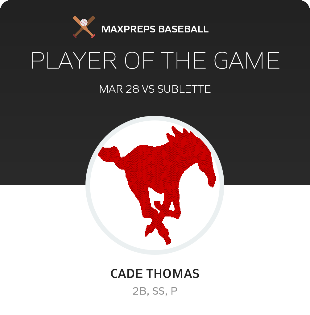 Next, the Larks face the Southwestern Heights Mustangs (Kismet, KS) in a Hi-Plains bout, on Monday, March 28. Sublette will attempt to move on its 1-1 season record. The Mustangs enter the bout with a 2-0 record after their 12-2 non-league win over Minneola (Minneola, KS).