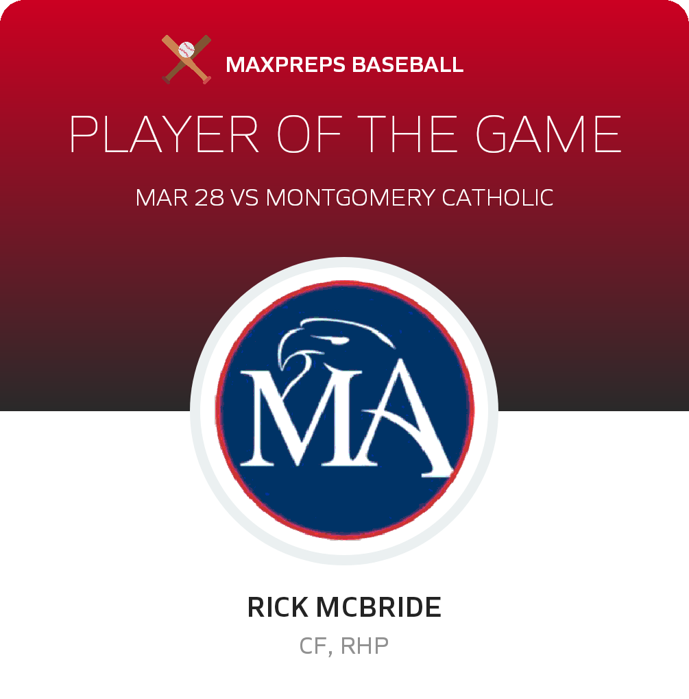 The Eagles now hold a 7-5 record. They take the field next when they travel to Saint James for a 3A Area 6 battle on Thursday, March 30. Montgomery Academy will play a Trojans squad coming off a 11-1 non-league loss to Tallassee (Tallassee, AL). The Trojans record now stands at 6-4.