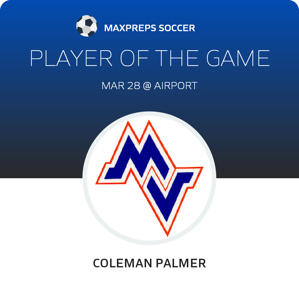 In Tuesday's league game, the Midland Valley Mustangs (Graniteville, SC) soccer squad tipped the host Airport Eagles (West Columbia, SC), by a final score of 1-0.