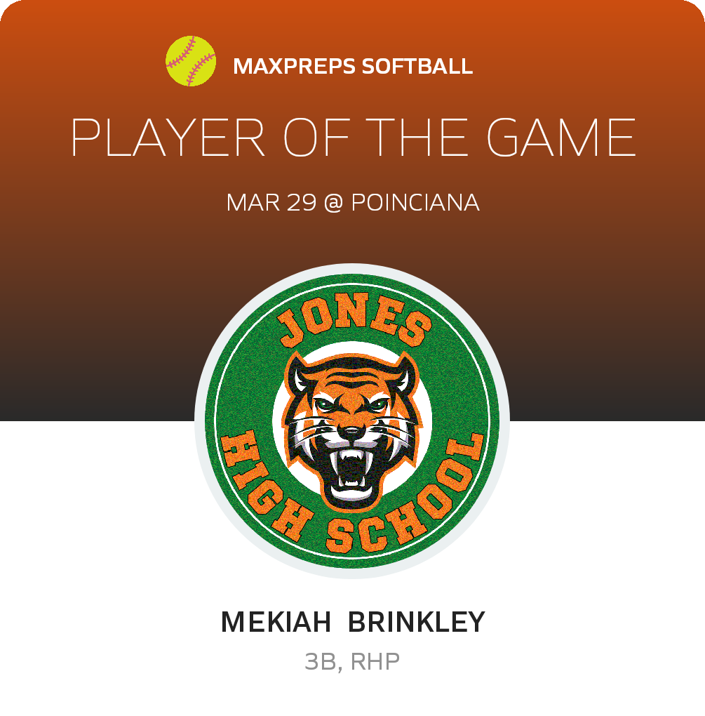 Spectators at Tuesday's non-league match between the Poinciana Eagles (Kissimmee, FL) and the visiting Jones Fightin' Tigers (Orlando, FL), witnessed Poinciana's softball squad prevail over Jones by a count of 18-0.