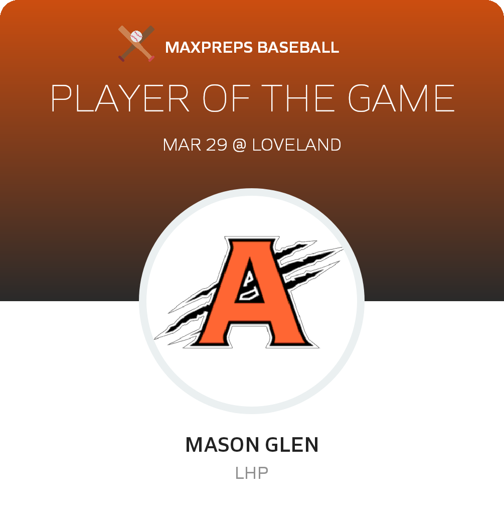 Glen earned the win for Anderson Varsity Raptors. Glen allowed three hits and zero runs over four innings, striking out five. Fecher and Elliff entered the game out of the bullpen and helped to close out the game in relief. Elliff recorded the last four outs to earn the save for Anderson Varsity Raptors.