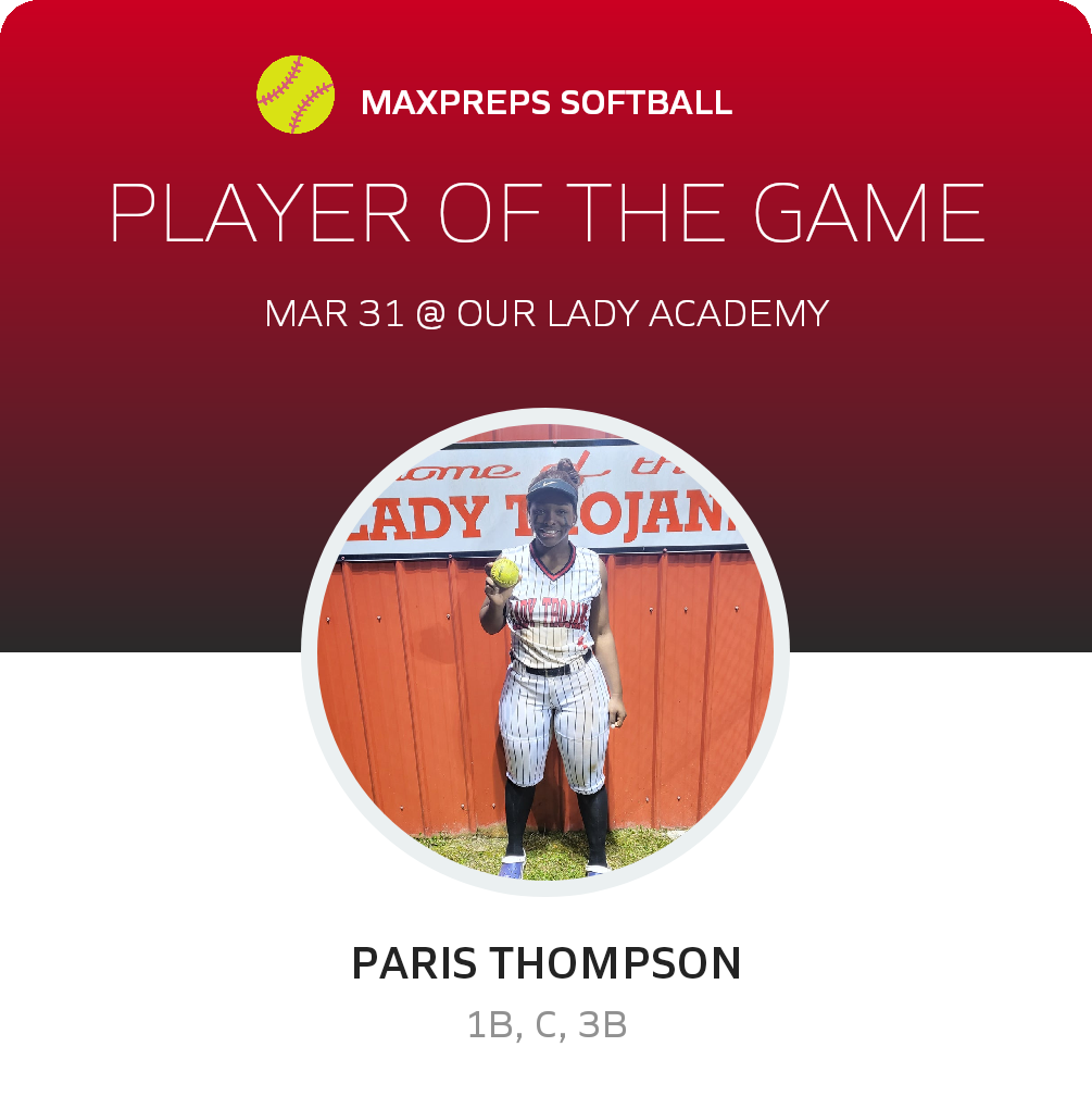The West Marion Trojans routed the host Our Lady Academy Crescents softball squad by a count of 20-3 in Thursday's league battle.