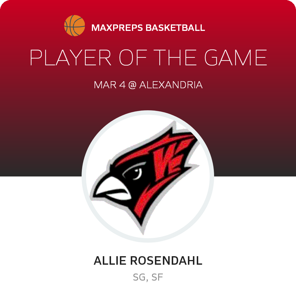 Congratulations to #11 Allie Rosendahl for being selected the Willmar Girls Basketball Player of the Game.