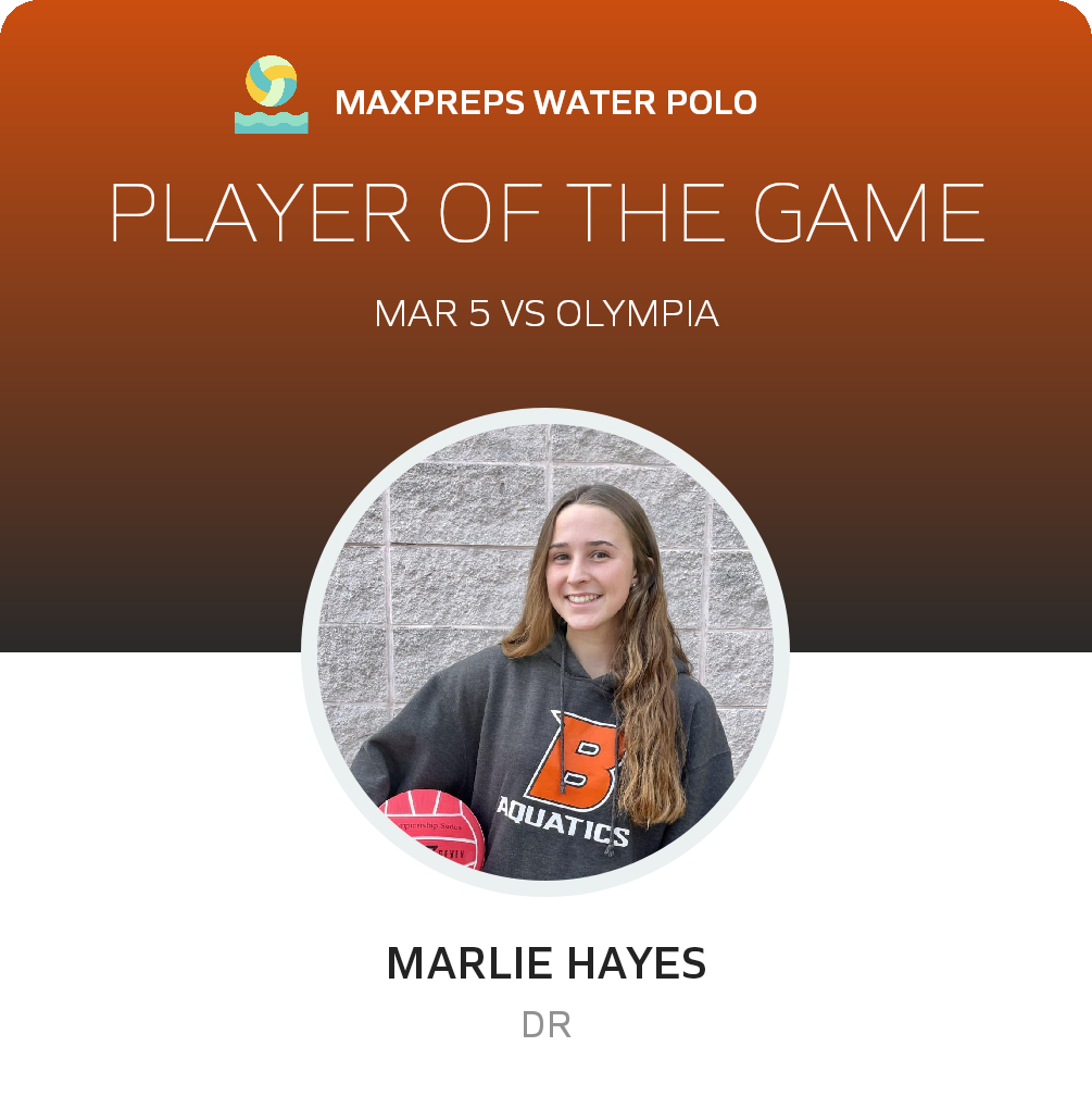 Congratulations to #4 Marlie Hayes for being selected the Boone Girls Water Polo Player of the Game.