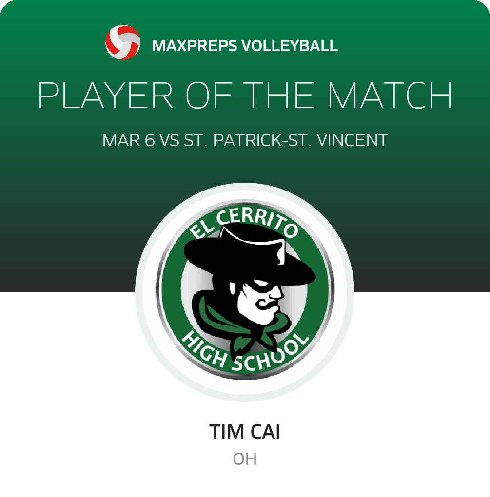 California High School Volleyball - El Cerrito over St. Patrick-St. Vincent