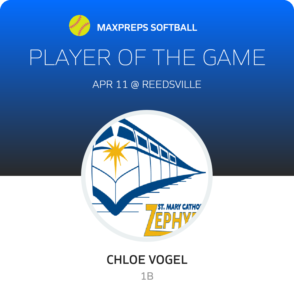 Congratulations to #2 Chloe Vogel for being selected the St. Mary Catholic Softball Player of the Game.