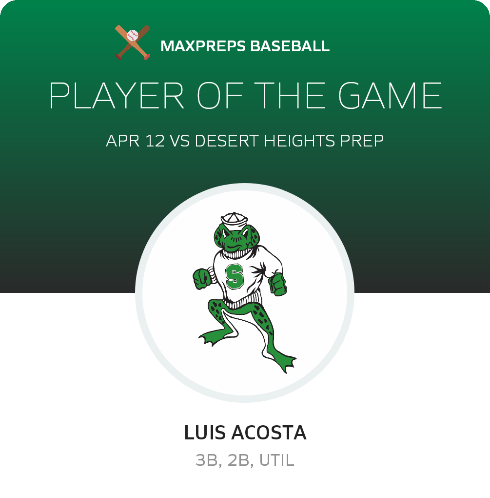In Wednesday's league game, the visiting Desert Heights Prep Yote baseball team scored a nice 16-4 victory over the Salome Frogs.