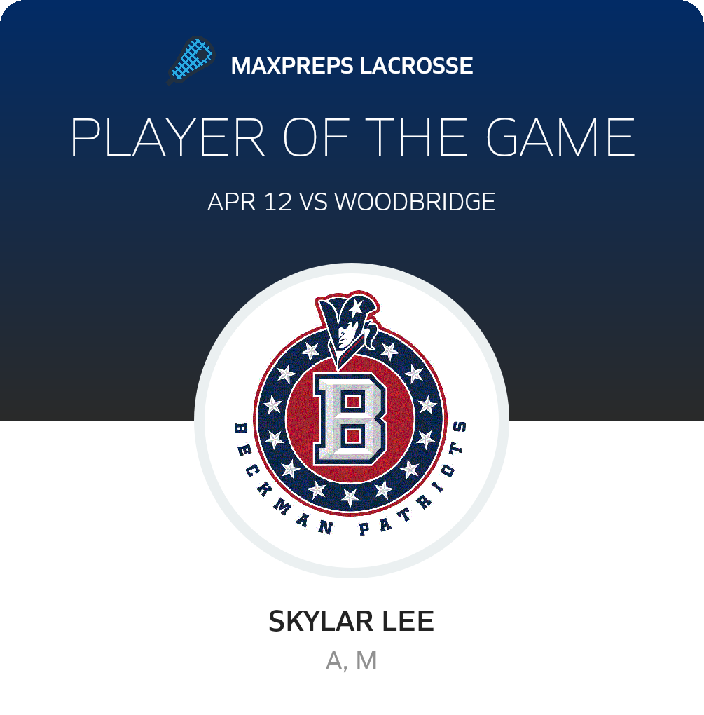 The Woodbridge Warriors lacrosse team scored 12 points and limited the host Beckman Patriots to 10 in the Warriors league triumph on Friday.