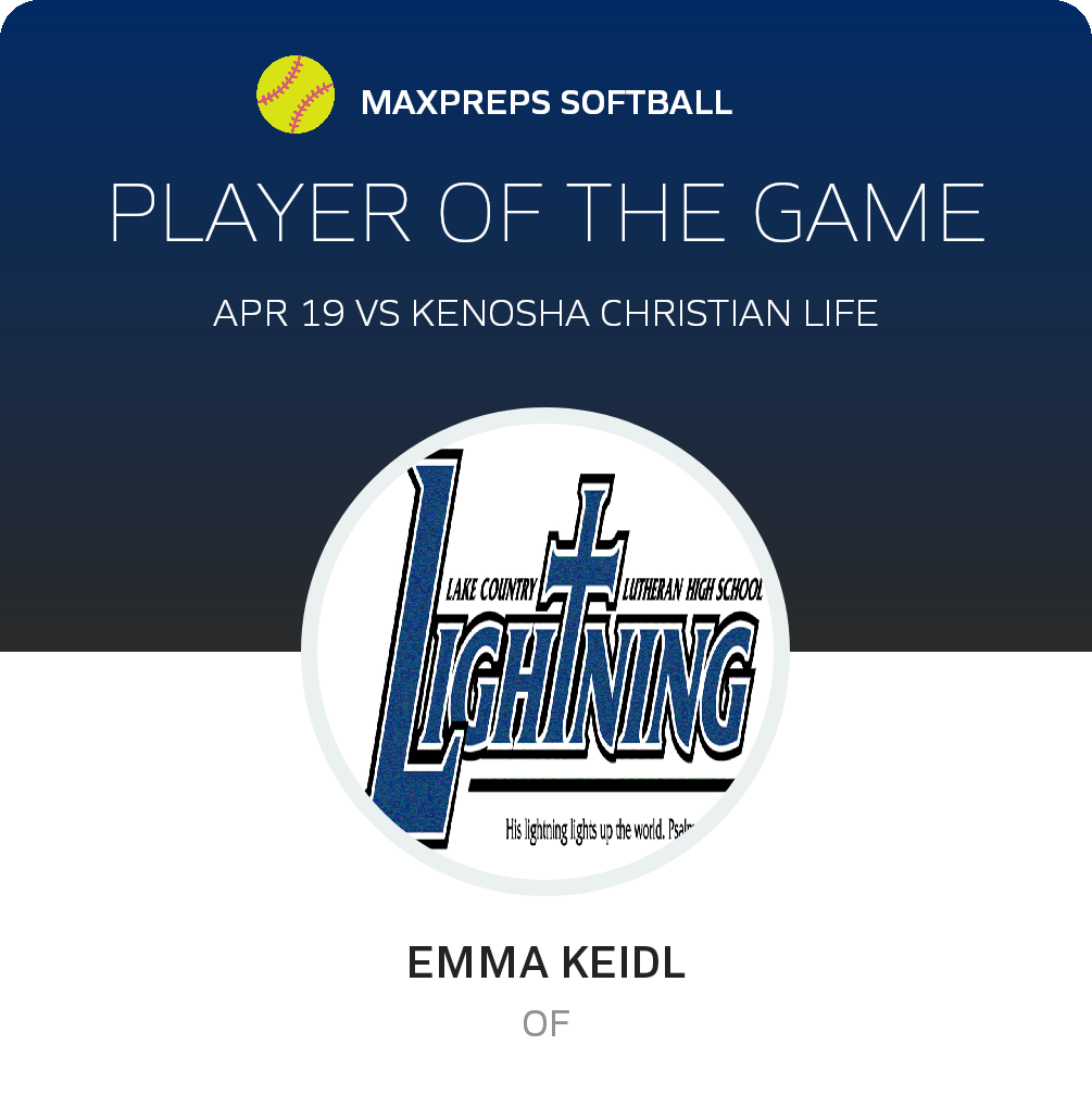 Wisconsin High School Softball - Lake Country Lutheran bounces Kenosha Christian Life