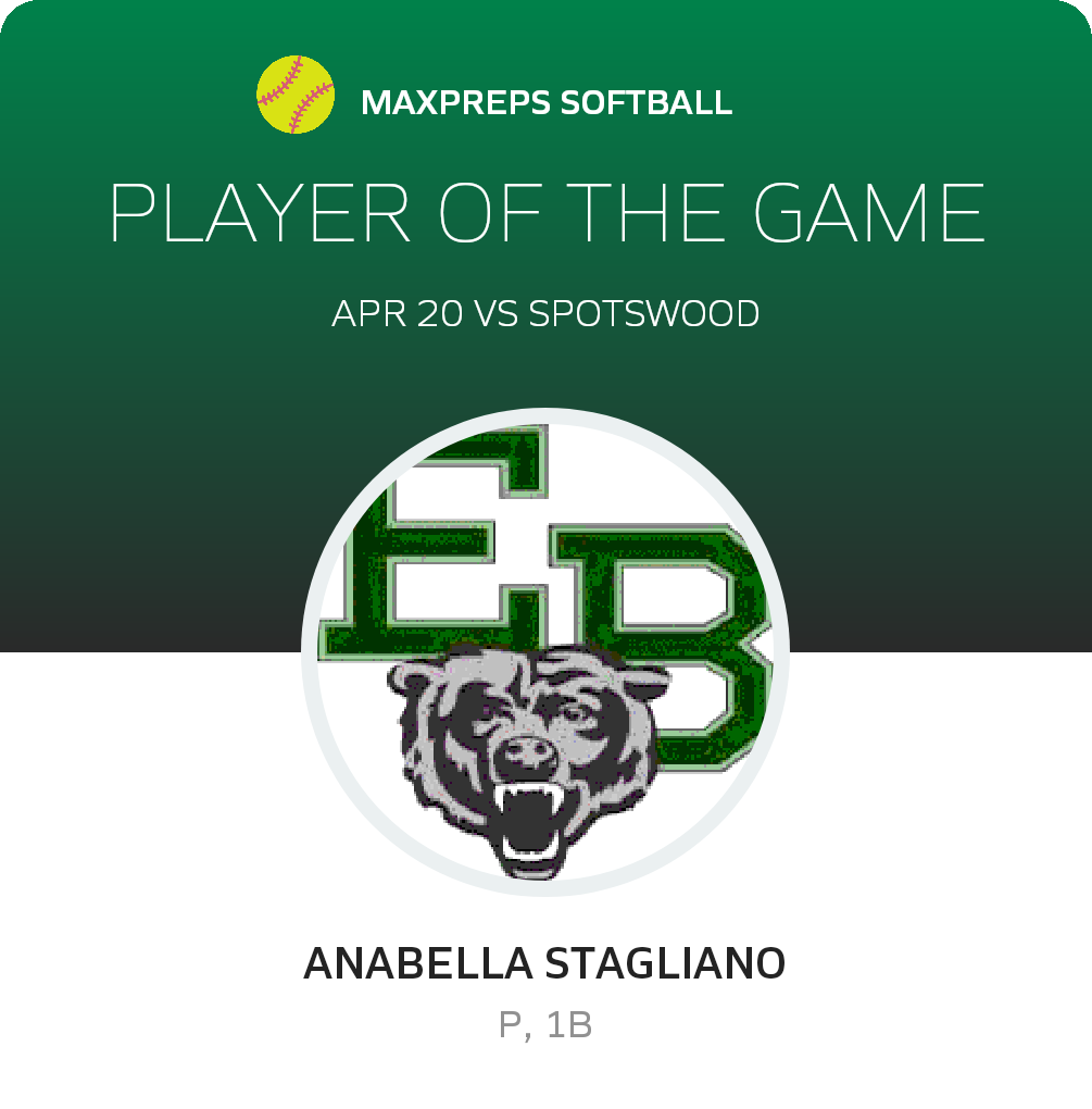 Congratulations to #88 Anabella Stagliano for being selected the East Brunswick Softball Player of the Game.
