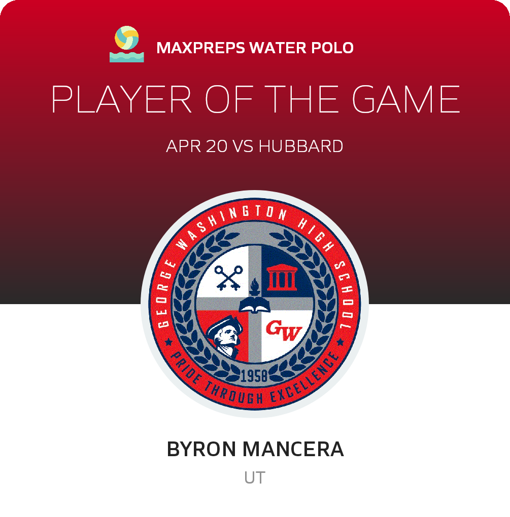 Congratulations to #3 Byron Mancera for being selected the Chicago Washington Water Polo Player of the Game.