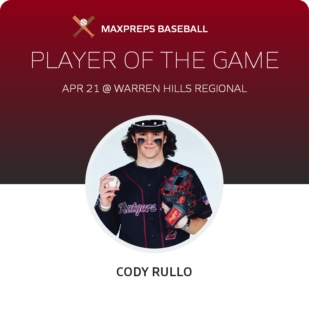 In Thursday's league game, the visiting Rutgers Prep Argonauts baseball team scored a nice 12-1 victory over the Warren Hills Regional Blue Streaks.