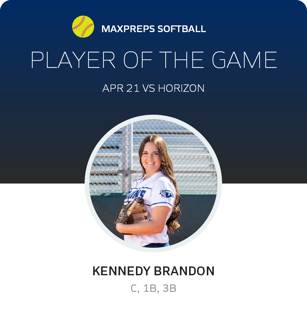 Congratulations to #21 Kennedy Brandon for being selected the Cactus Shadows Softball Player of the Game.