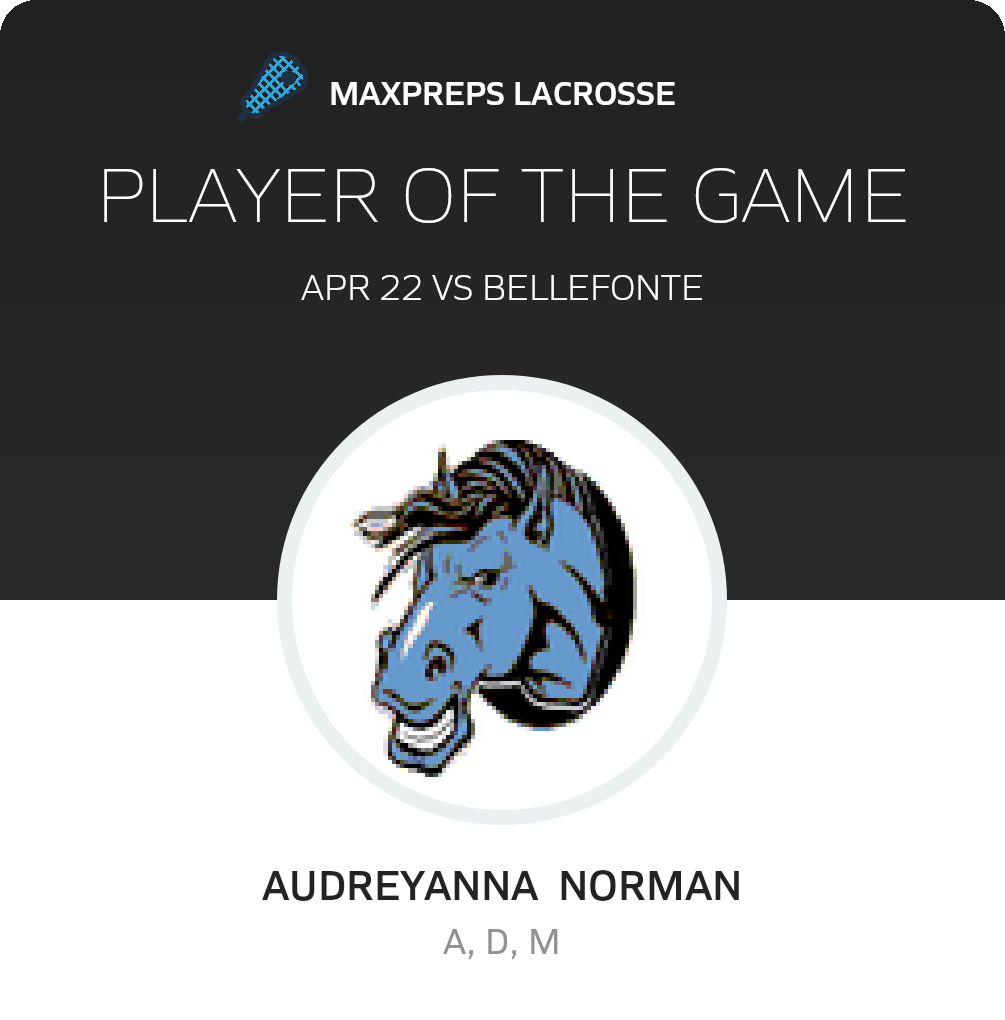Congratulations to #5 Audreyanna Norman for being selected the Midd-West Girls Lacrosse Player of the Game.