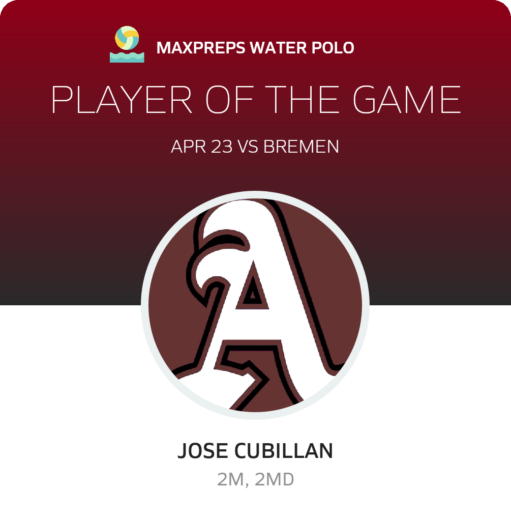 Congratulations to #7 Jose Cubillan for being selected the Argo Water Polo Player of the Game.