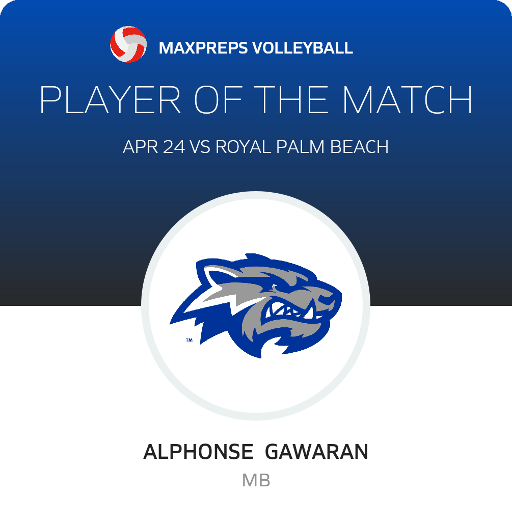 The Royal Palm Beach Wildcats volleyball team (Royal Palm Beach, FL), was dropped 3-0 in Monday's league challenge with the host Wellington Wolverines (Wellington, FL)