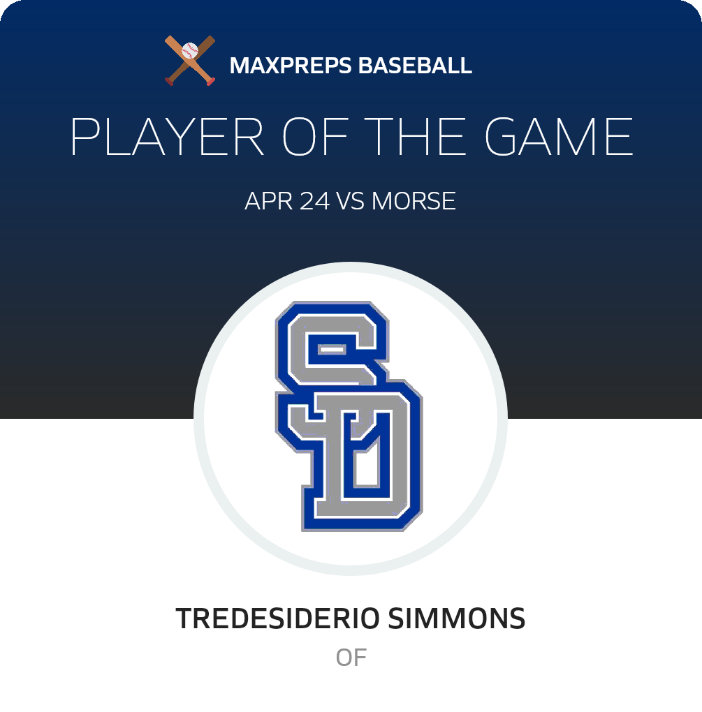 Congratulations to #32 TreDesiderio Simmons for being selected the San Diego Baseball Player of the Game.