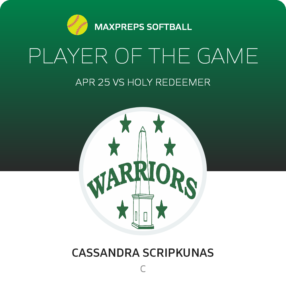 Pennsylvania High School Softball - Holy Redeemer bounces Wyoming Area