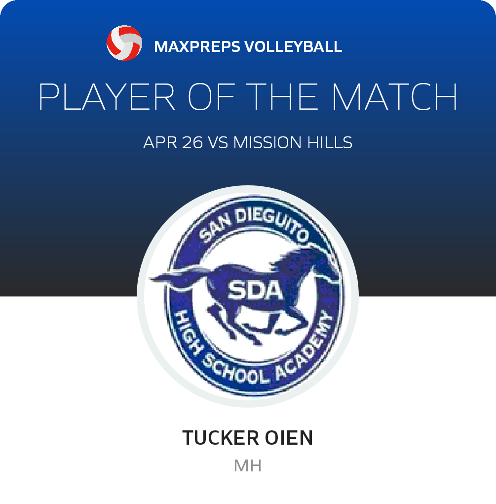In Tuesday's league contest, the Mission Hills Grizzlies (San Marcos, CA) volleyball squad were winner over the host San Dieguito Academy Mustangs (Encinitas, CA), by a margin of 3-0.