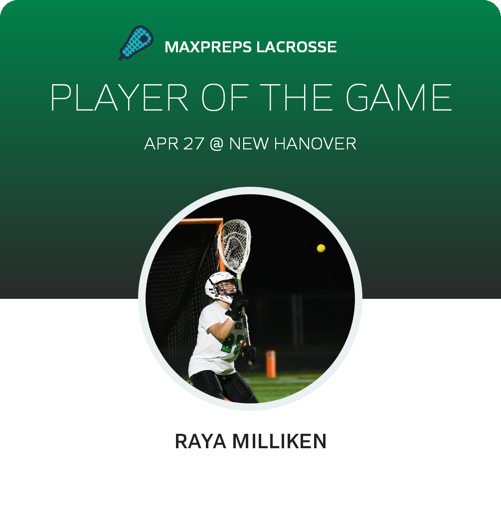 Congratulations to #22 Blair Mickle for being selected the New Hanover Girls Lacrosse Player of the Game.