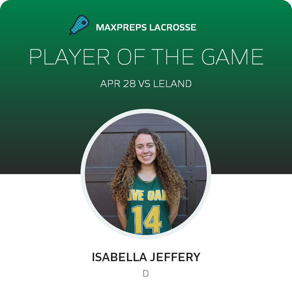 In Thursday's league battle, the Live Oak Acorns (Morgan Hill, CA) lacrosse squad the visiting Leland Chargers (San Jose, CA), by a count of 5-1.