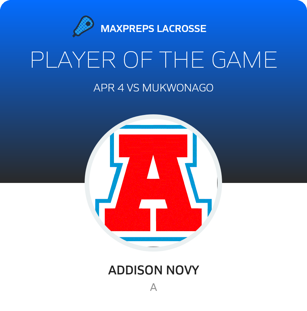 Congratulations to #17 Addison Novy for being selected the Arrowhead Girls Lacrosse Player of the Game.