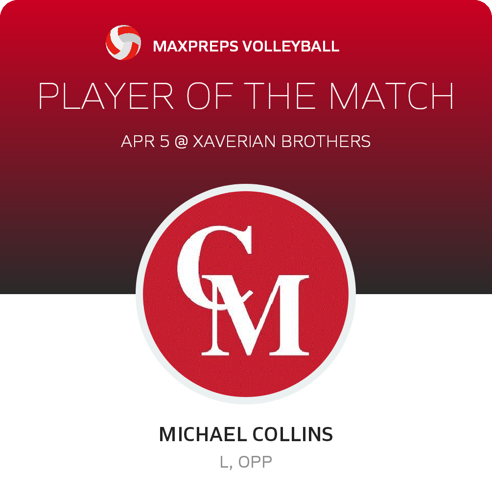 Congratulations to #21 Michael Collins for being selected the Catholic Memorial Boys Volleyball Player of the Match.