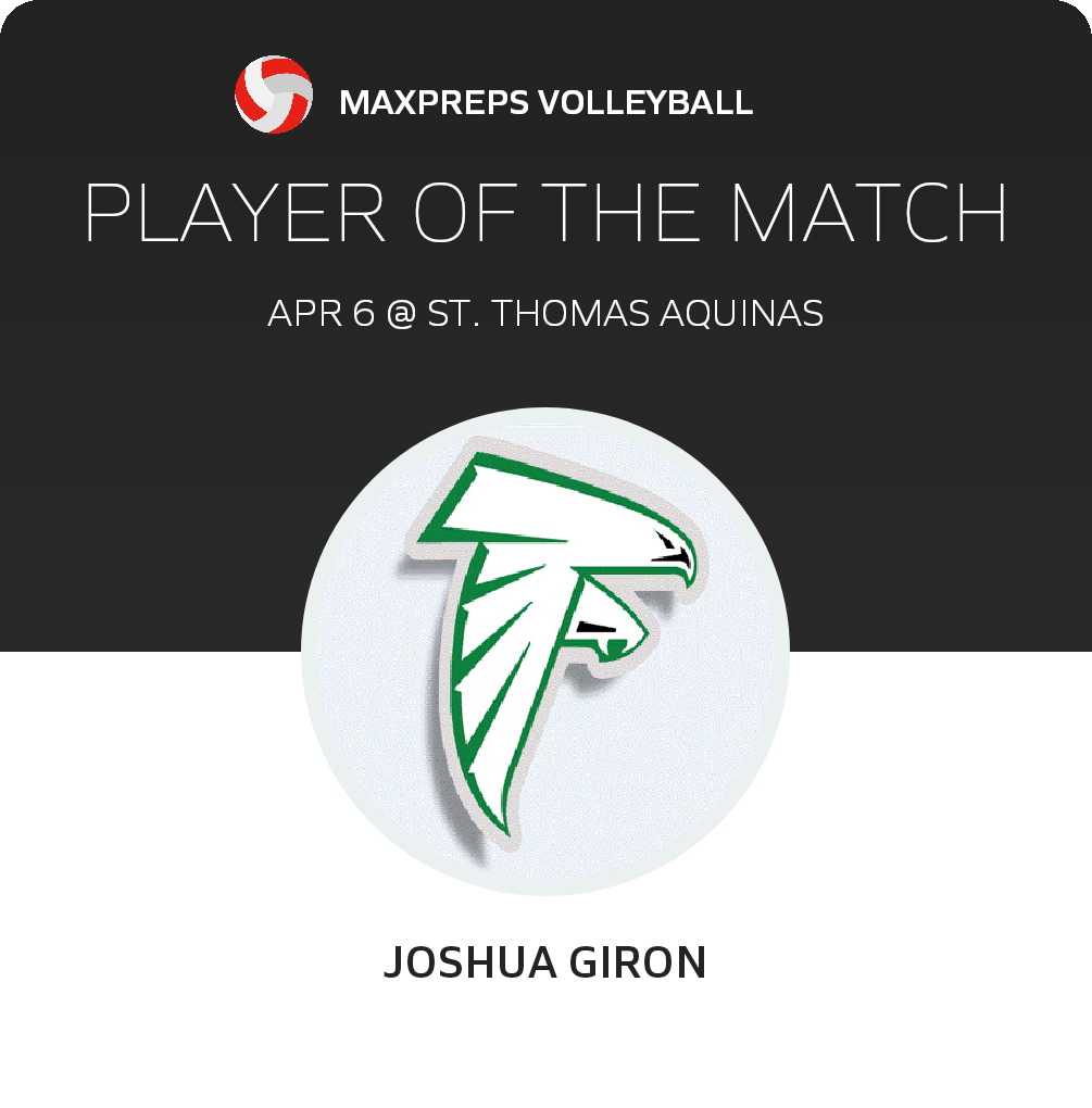 Flanagan Falcons (Pembroke Pines, FL) supporters left the game in high spirits Wednesday as they observed their volleyball squad top the host St. Thomas Aquinas Raiders (Fort Lauderdale, FL), 3-1 in a non-league match.