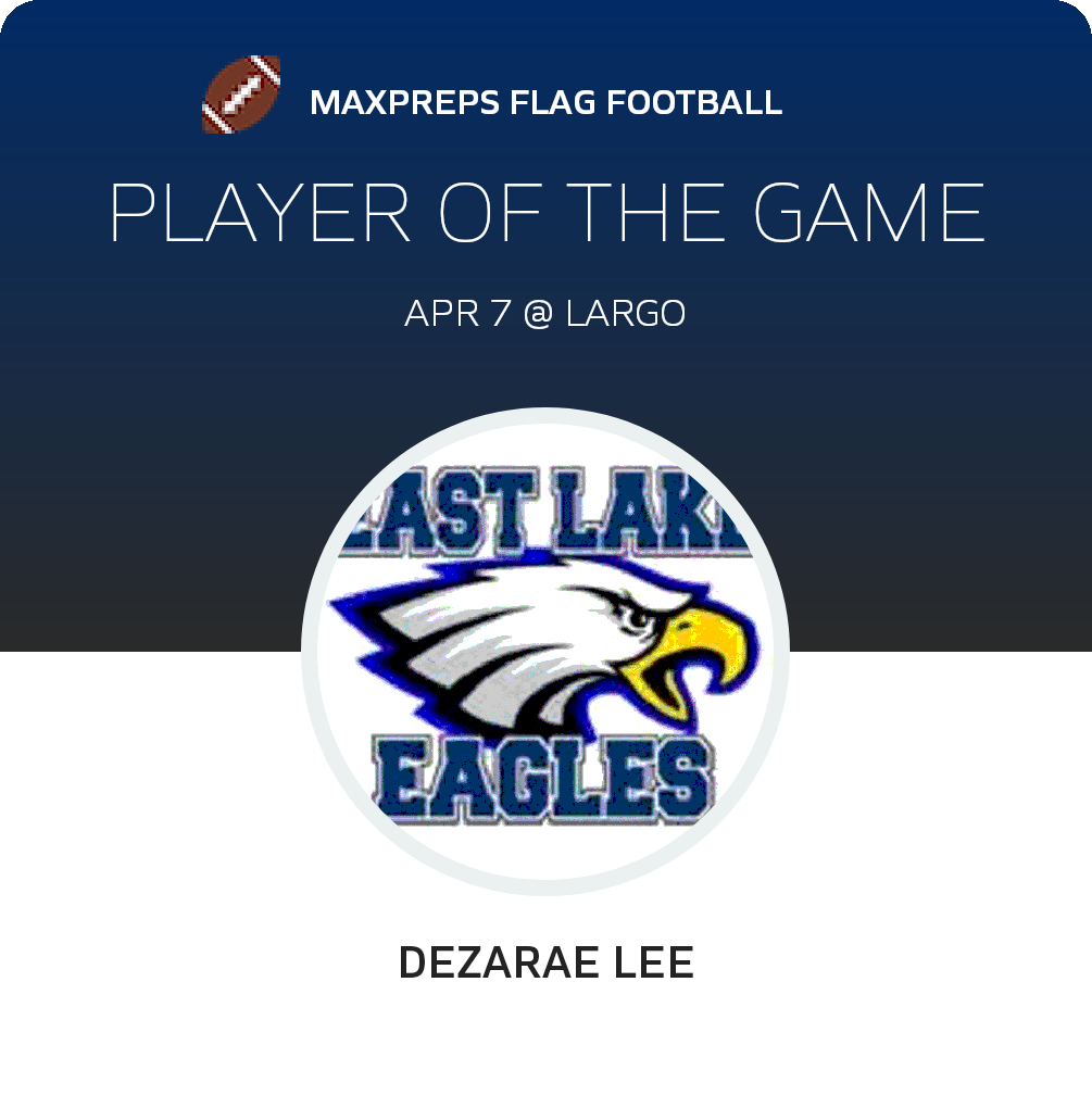 Congratulations to Dezarae Lee for being selected the East Lake Girls Flag Football Player of the Game.