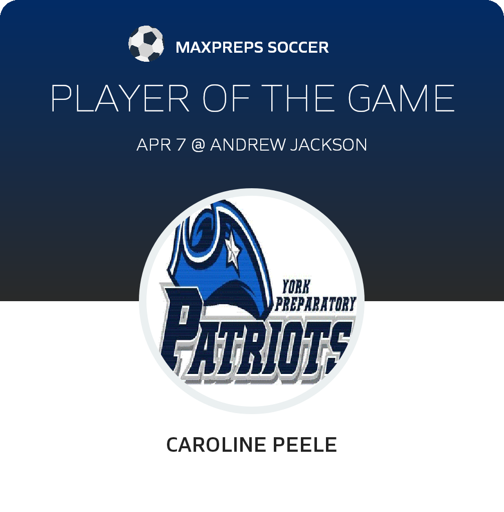 Congratulations to #21 Caroline Peele for being selected the York Prep Girls Soccer Player of the Match.