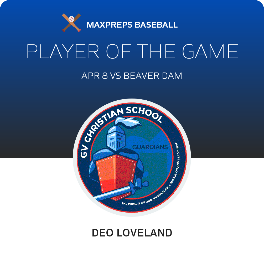 Coming up next, the Guardians encounter the Beaver Dam Diamondback (Littlefield, AZ) in a 1A Southern - South contest, on Friday, April 8. GV Christian will attempt to better on its 2-0 season record. The Diamondback come into the contest with a 2-2 record after their 5-4 league win over Mountain View Christian (Las Vegas, NV).