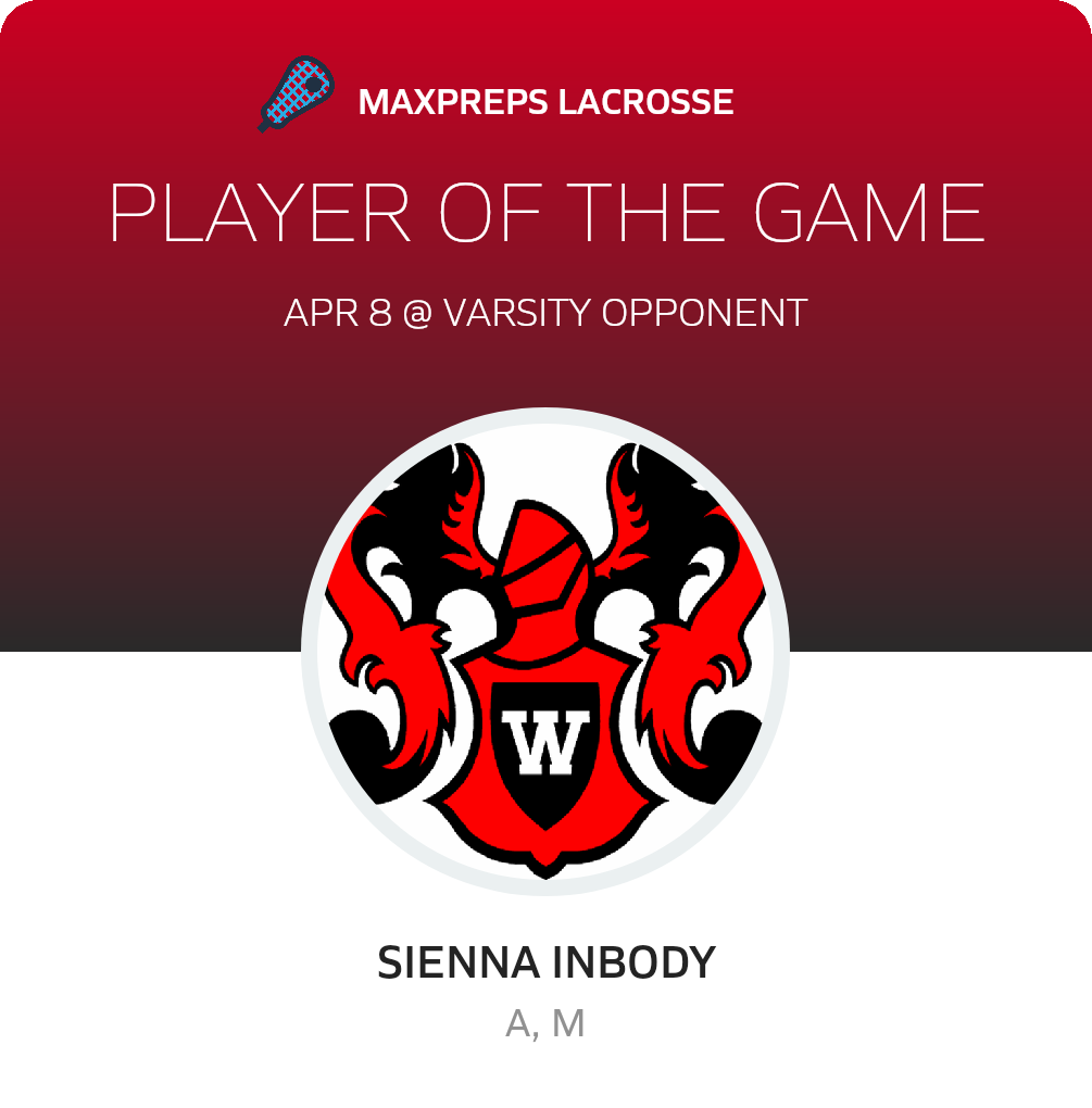 Congratulations to #11 Sienna Inbody for being selected the Omaha Westside Girls Lacrosse Player of the Game.