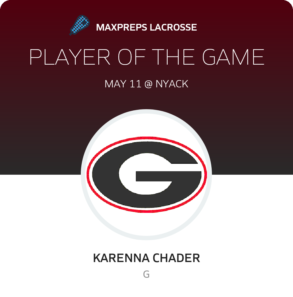 Congratulations to #4 Karenna Chader for being selected the Rye Girls Lacrosse Player of the Game.