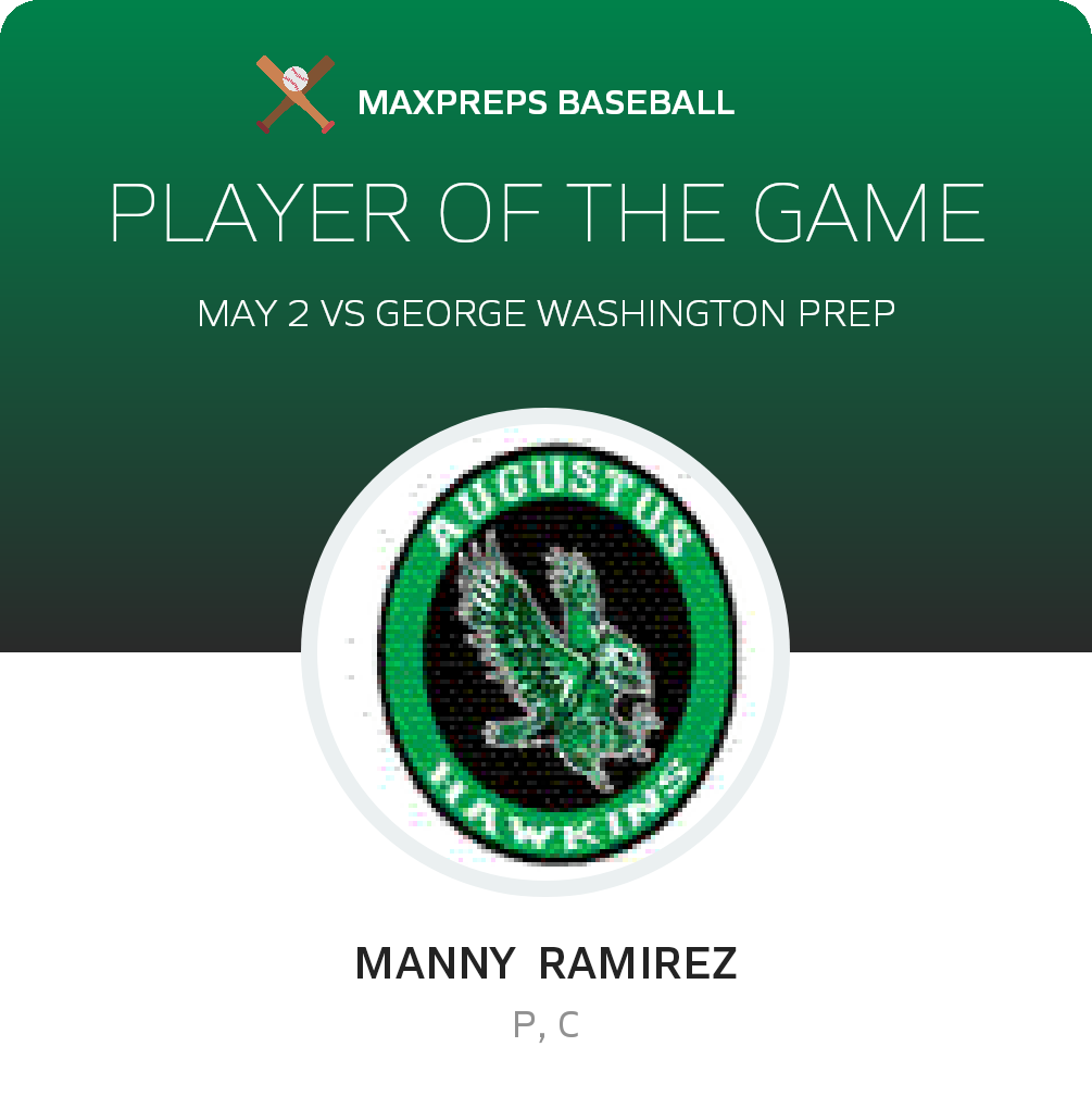 Congratulations to #7 MANNY RAMIREZ for being selected the Hawkins Baseball Player of the Game.