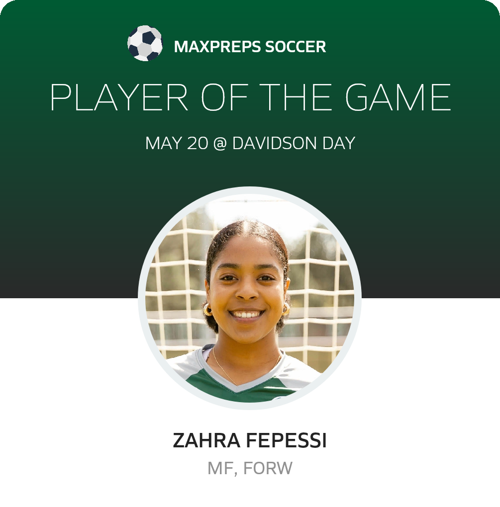 Congratulations to #10 Zahra Fepessi for being selected the Grace Christian Girls Soccer Player of the Match.