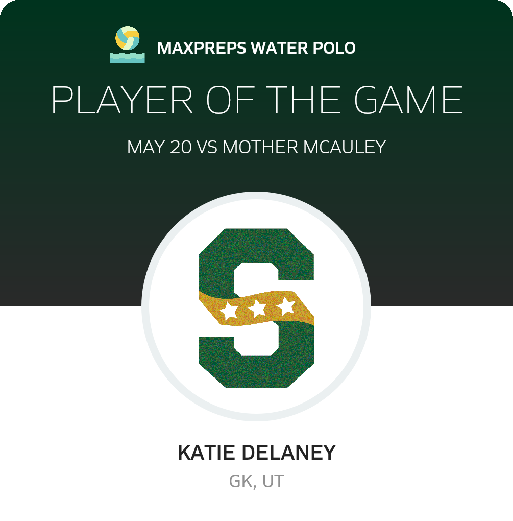 Congratulations to #1 Katie Delaney for being selected the Stevenson Girls Water Polo Player of the Game.