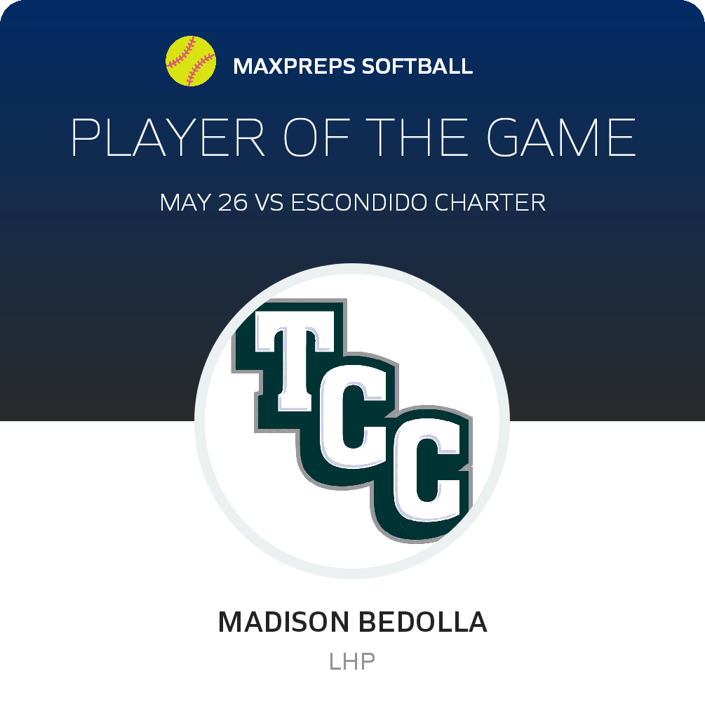 California High School Softball - Tri-City Christian bounces Escondido Charter