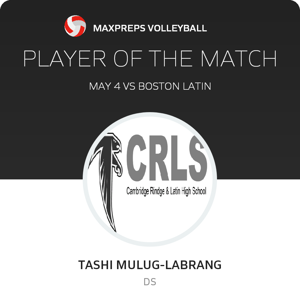 In Wednesday's league contest, the Cambridge Rindge & Latin Falcons (Cambridge, MA) volleyball squad were winner over the visiting Boston Latin Wolfpack (Boston, MA), by a margin of 3-0.