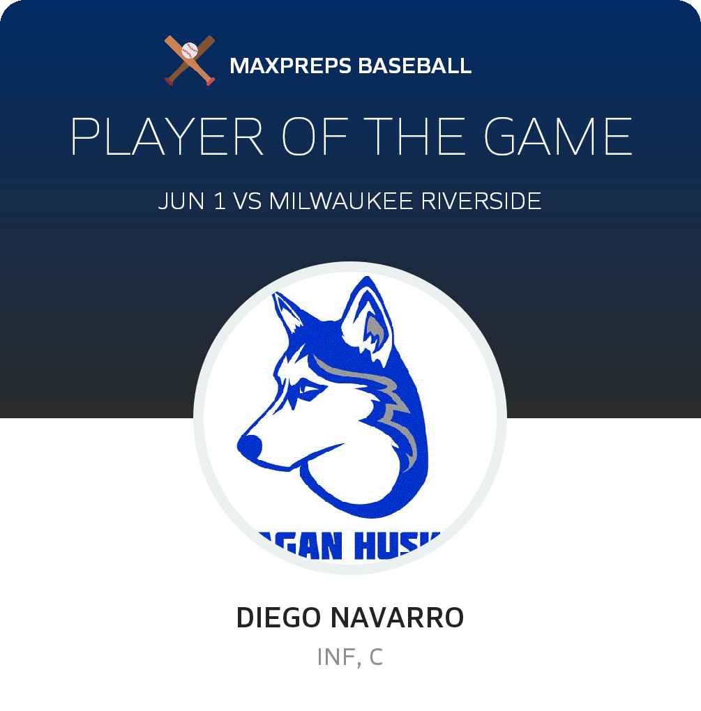 Congratulations to #6 Diego Navarro for being selected the Milwaukee Reagan Baseball Player of the Game.