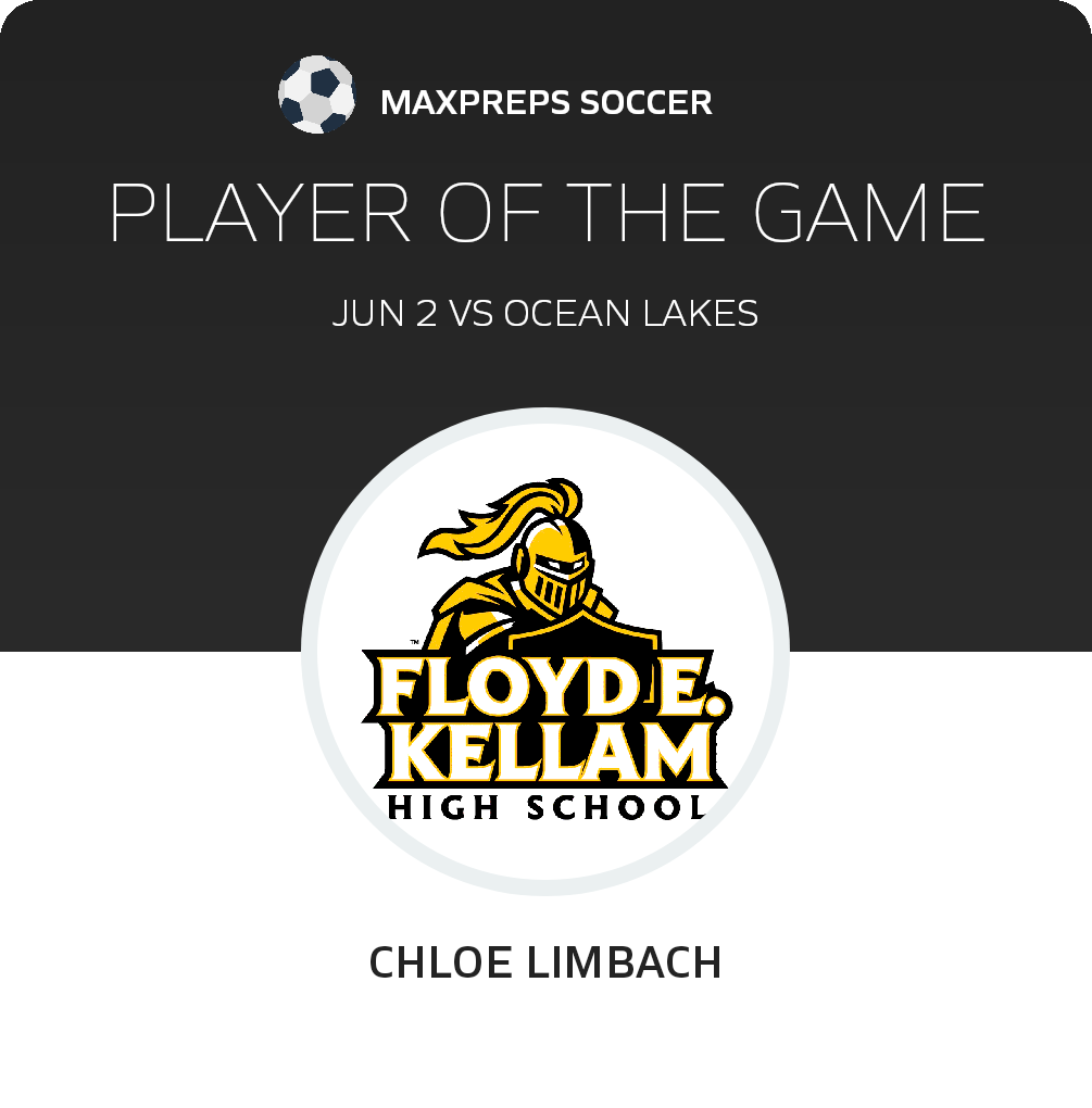 Congratulations to Chloe Limbach for being selected the Kellam Girls Soccer Player of the Match.