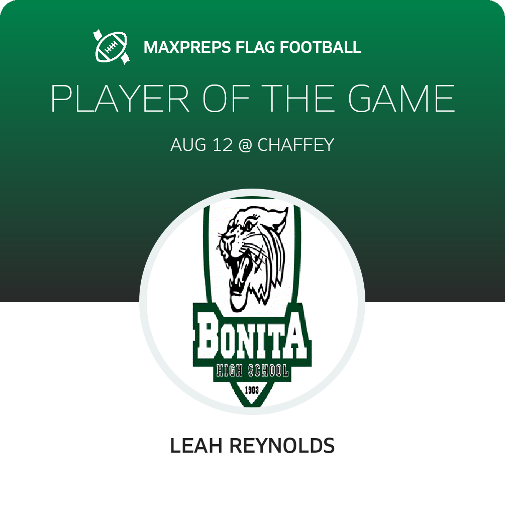 In Tuesday's non-league outing, the Bonita Bearcats (La Verne, CA) flag football squad trounced the host Chaffey Tigers (Ontario, CA), by a margin of 32-0.