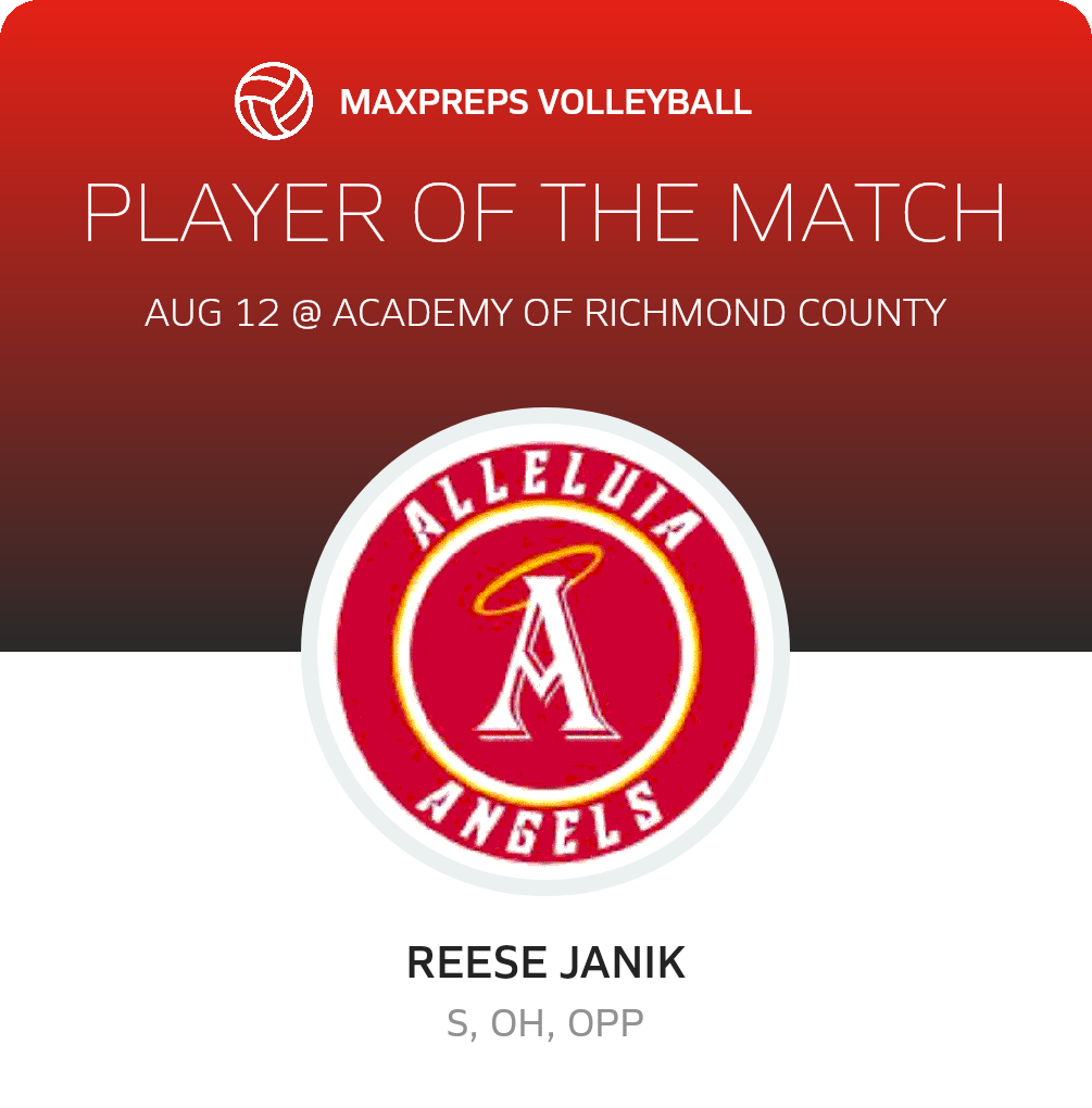 In Tuesday's non-league challenge, the host Academy of Richmond County Musketeers volleyball team scored a 3-0 victory over the Alleluia Community Angels.