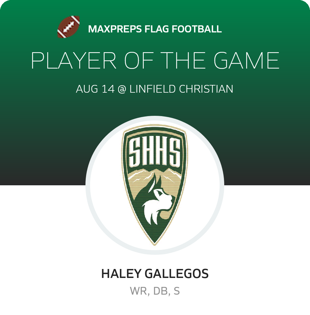 Congratulations to #21 HAILEY GALLEGOS for being selected the South Hills Girls Flag Football Player of the Game.