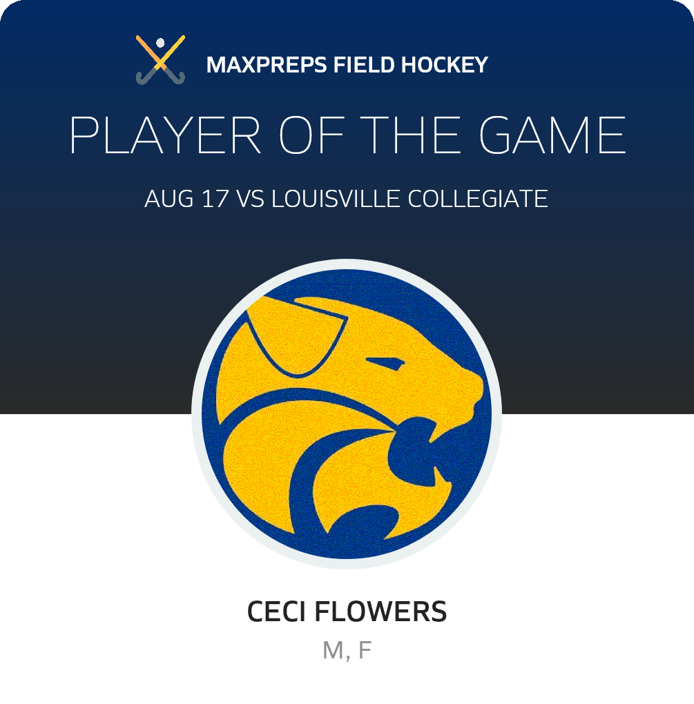 Congratulations to #20 Ceci Flowers for being selected the Kentucky Country Day Field Hockey Player of the Game.