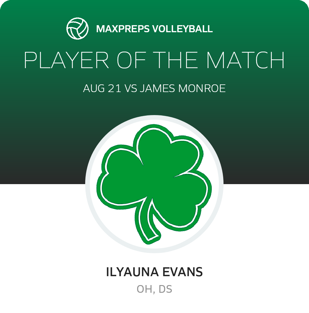 In Thursday's non-league match, the Charleston Catholic Irish (Charleston, WV) volleyball squad tipped the visiting James Monroe Mavericks (Lindside, WV), by a count of 2-1.